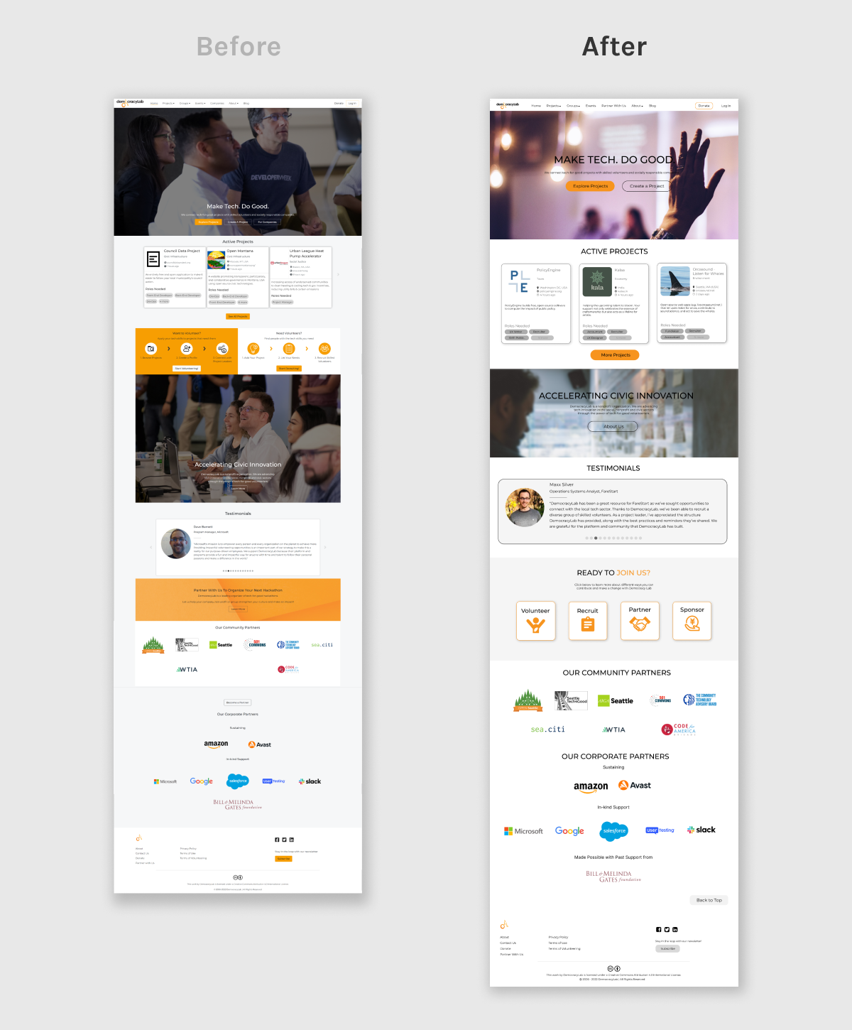As an onboarding UX design volunteer, my first assignment was to improve the UI to boost membership — a network of volunteers, project owners, community partners, and sponsors.
